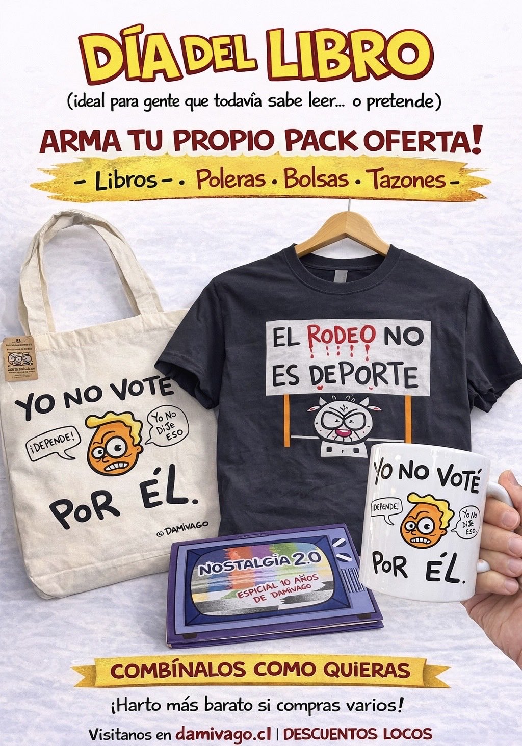 COMBO OFERTA DÍA DEL LIBRO: 2 LIBROS + 1 POLERA NEGRA + 1 TAZÓN + 1 BOLSA TOTE BAG